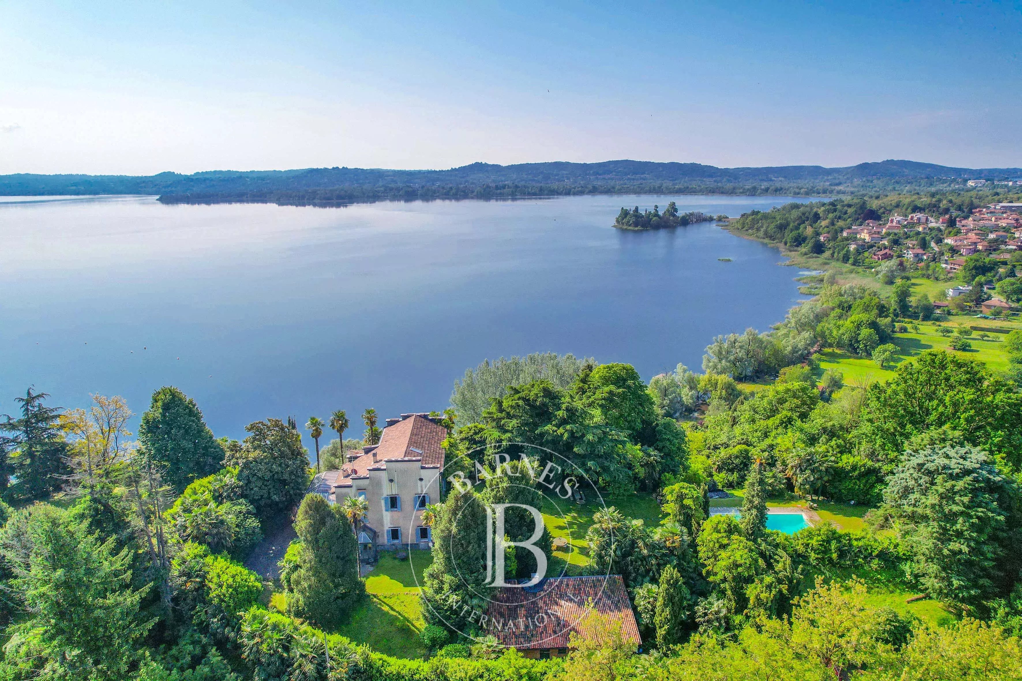 La proprietà include la villa principale, una dependance, un rustico con accesso diretto al lago, piscina, frutteto, limonaia, triple autorimesse e un viale che conduce alla passeggiata lungo lago. Riservata e verdeggiante, è comunque vicina ai servizi e ai collegamenti con Varese e Milano.